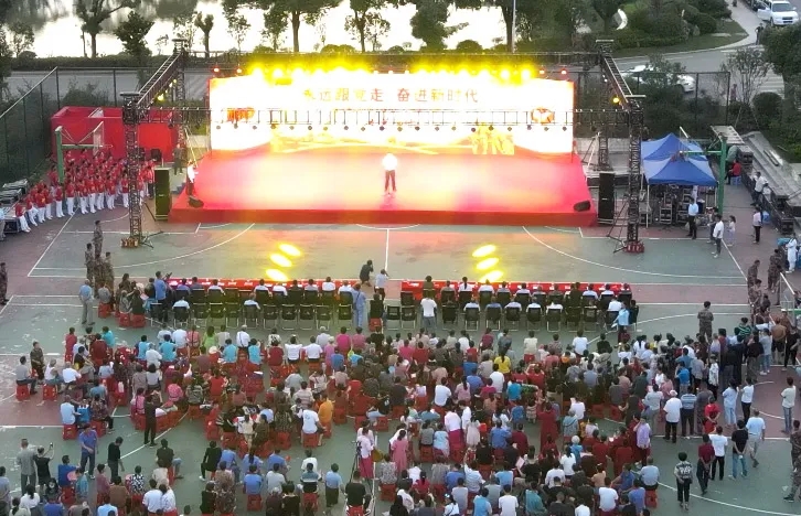 演出的最后,全体在场人员合唱《没有共产党就没有新中国》,台上灯火通明,台下党旗摇动,悠扬的歌声飘荡在凤凰山下,久久不息。