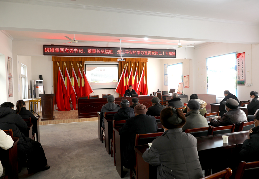 12月30日是2022年最后一个工作日,威廉希尓指数500公司党委书记、董事长吴福胜不辞辛苦,从繁忙的事务中抽身,前往槐林镇平安村,为平安村党员宣讲党的二十大精神,调研全年乡村振兴工作。集团公司党委副书记张正和,公司办公室、党委工作部负责人陪同。